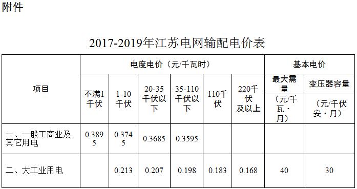 附件:2017-2019年江蘇電網(wǎng)輸配電價表