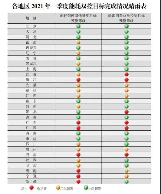 為貫徹落實黨中央、國務(wù)院關(guān)于強(qiáng)化能源消費(fèi)總量和強(qiáng)度雙控的決策部署,加強(qiáng)能耗雙控形勢分析預(yù)警,國家發(fā)展改革研究提出了《各地區(qū)2021年一季度能耗雙控目標(biāo)完成情況晴雨表》。