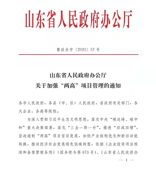 山東:嚴(yán)控“兩高”項(xiàng)目(高耗能高排放項(xiàng)目)把不符合要求的“兩高”項(xiàng)目堅(jiān)決拿下來。