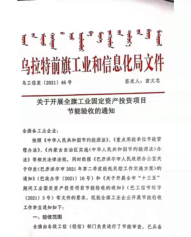 烏拉特前旗:對全旗工業(yè)企業(yè)開展節(jié)能審查驗(yàn)收,對期限內(nèi)驗(yàn)收不通過的企業(yè),按能耗“雙控”工作違規(guī)項(xiàng)目有關(guān)規(guī)定執(zhí)行停產(chǎn)整改。