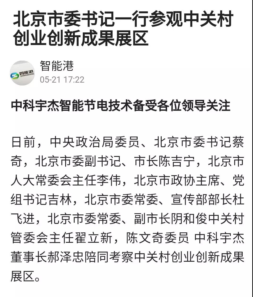 厲害了!中科節(jié)電技術在科博會上備受北京領導關注,引搜狐新聞報道!