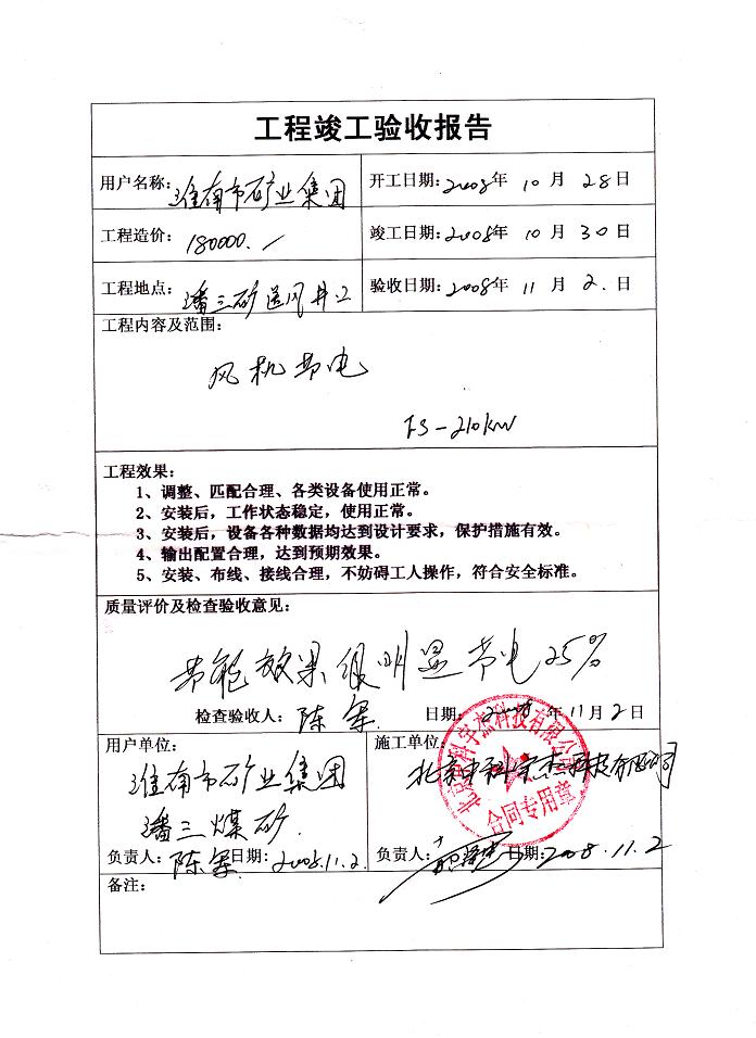 項目順利通過驗收,結果表明,中科宇杰的智能風機節電系統的節能效率達到30%,投資回報期不到兩年,超出了集團領導的節能預期,取得了極大的經濟效益和社會效益。