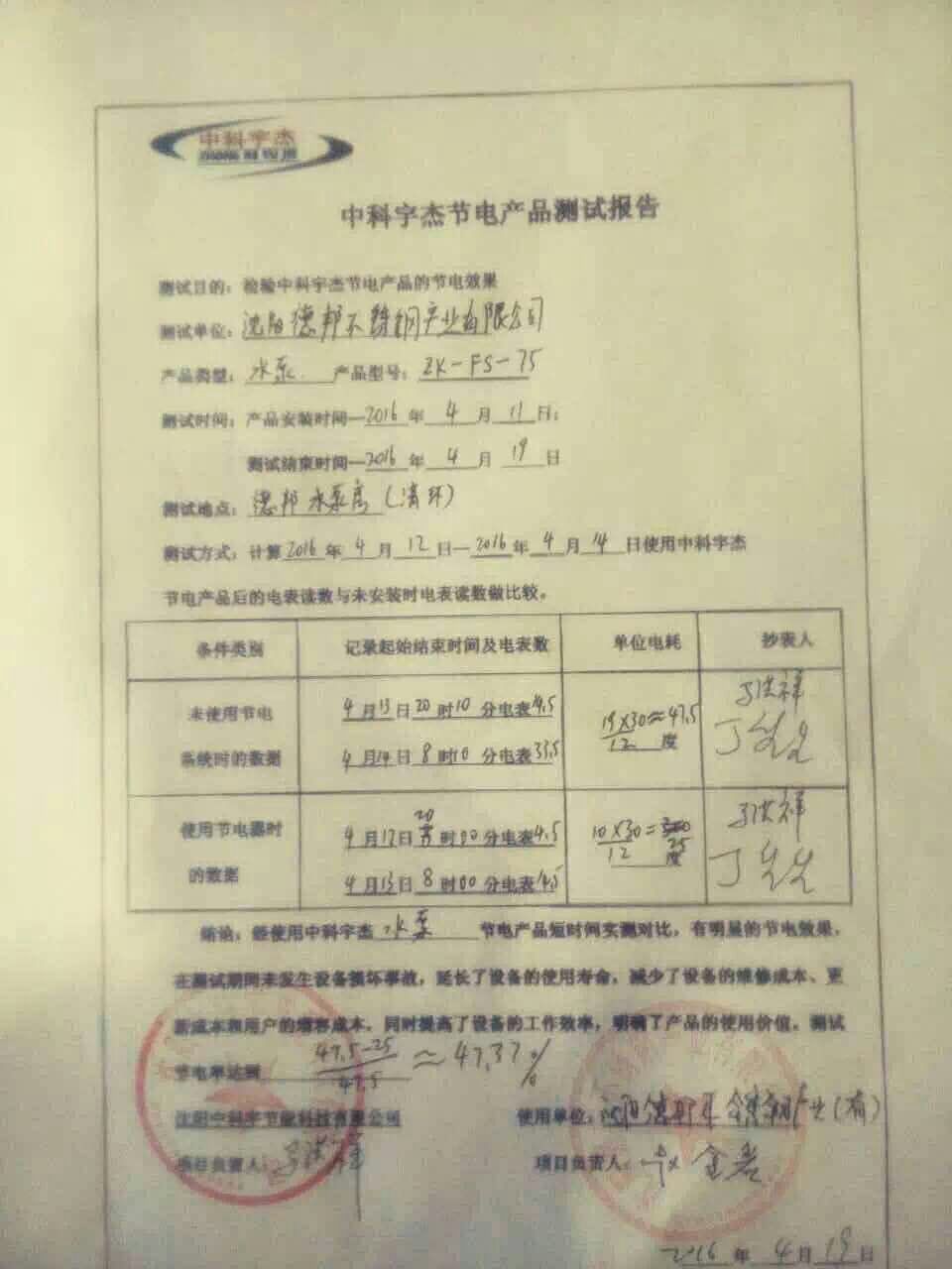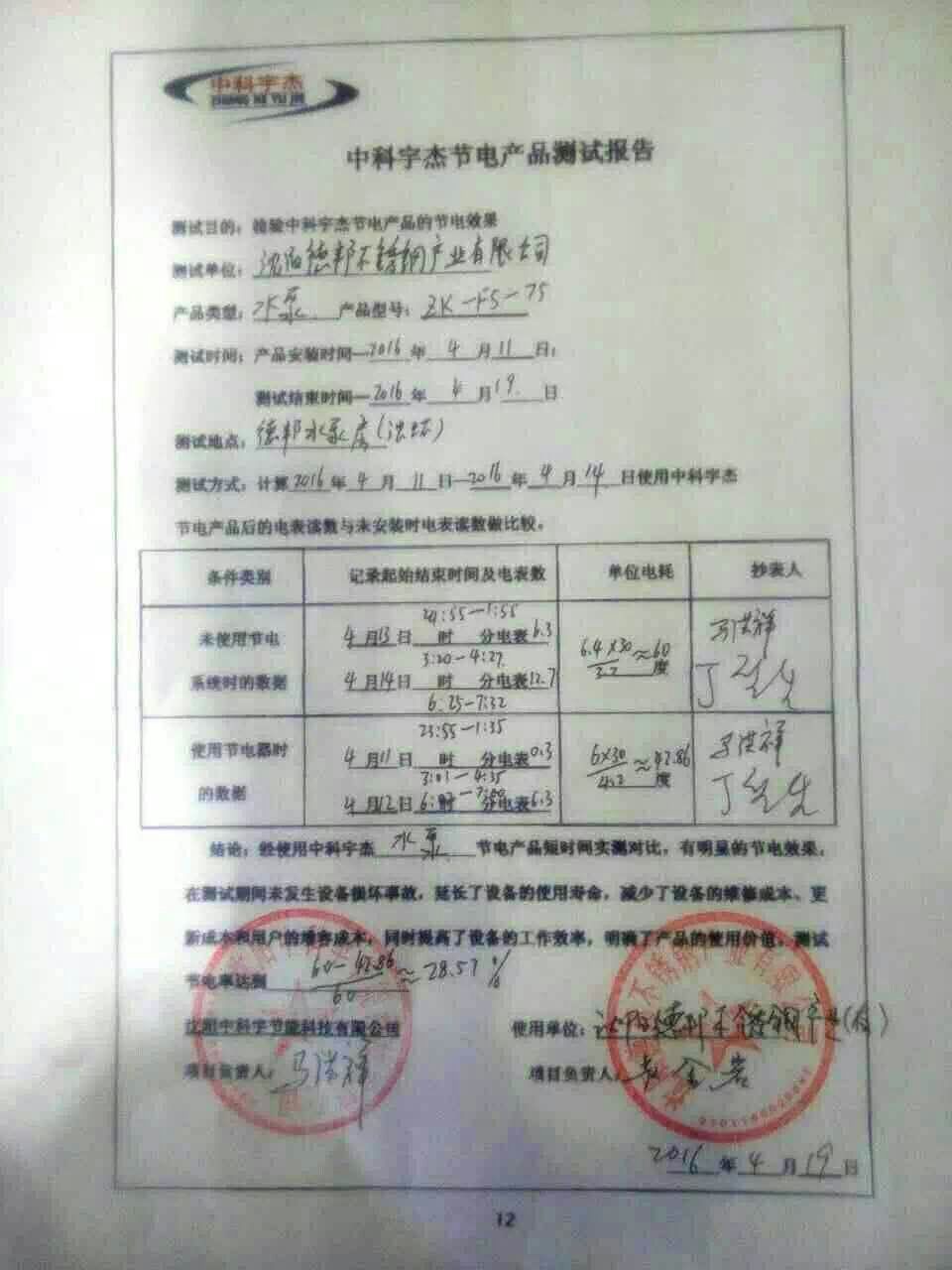 安裝調(diào)試驗(yàn)收,節(jié)能效率高達(dá)47.37%。節(jié)能設(shè)備安裝后,不但完全沒(méi)有對(duì)原設(shè)備造成不良的影響,還起到了延長(zhǎng)設(shè)備壽命,減少維修成本的作用。該項(xiàng)目試點(diǎn)工程的節(jié)電效果顯著,得到了企業(yè)領(lǐng)導(dǎo)的一致認(rèn)可。