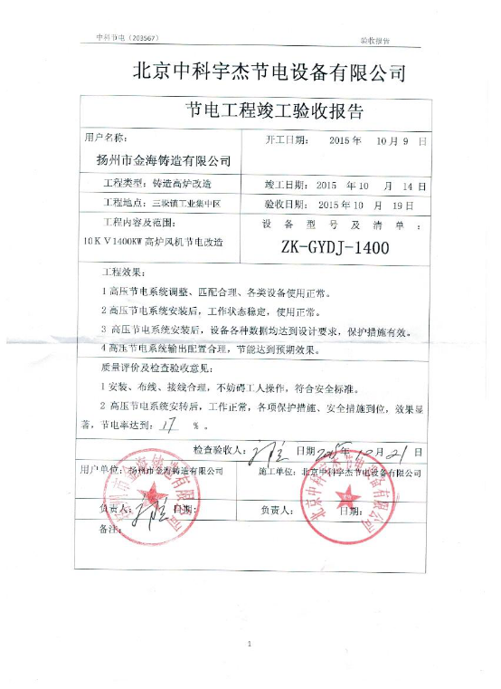 揚(yáng)州市金海鑄造有限公司(節(jié)電率:17%)